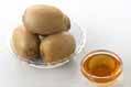 キウイは皮をむき、縦4等分に切り、芯の固い部分を切り落とし、5mm幅の半月切りにする。
