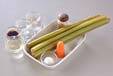 ニンジンは皮をむき、フキに合わせて棒状に切る。