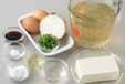 玉ネギが少し透明になれば豆腐を加え、卵液を細く流し入れる。菜ばしで大きく混ぜて火を止め、刻みネギを加え、器によそう。