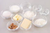 2の生地に小さく刻んだグリエールとくるみを混ぜ合わせ、天板にオーブンシートを敷き、スプーンで一口大に落とす。
