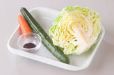 キャベツは4cm長さのせん切りにし、水でさっと洗う。