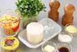 ボウルに<ドレッシング>を混ぜ合わせ、大根、ホタテ、コーン、貝われ菜をサッと和える。
