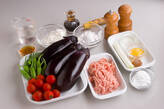 ナスに薄く片栗粉を振り掛け(切り込みにも片栗粉を薄くつける。)<ミンチ種>をはさみ、はみ出ないように形を整える。
