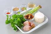 ミツバは根元を切り落とし、3cmの長さに切る。