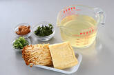 鍋にだし汁を入れて中火にかけ、煮立ったらブラウンエノキ、油揚げを加える。