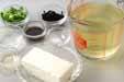 鍋にだし汁を入れて強火にかけ、煮立てば<調味料>を加え、再び煮立てば豆腐を加える。