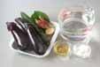 大きめのボウルに塩大さじ3と水1000mlを合わせ、ナス、キュウリ、ミョウガをつけ、20~30分そのまま置いておく。