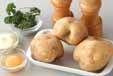 ジャガイモは皮ごときれいに水洗いし、ぬれたままラップで包み、電子レンジで6~7分加熱し、熱いあいだに布巾等に包んで皮をむく。マッシャーでつぶし、出来れば裏ごしする。