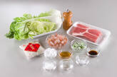 白菜は熱湯に入れゆで水に取り、粗熱が取れれば水気をきってみじん切りにし、しっかり水気を絞る。