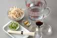 煮立てば<調味料>を加え、再び煮立てば、刻みネギを加え、器に注ぐ。