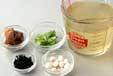 干しワカメは水で柔らかく戻して水気を絞り、長けれはザク切りにする。