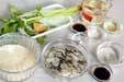 ショウガは皮をむき、細いせん切りにして水に放ちアク抜きする。