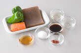 ピーマンを加え軽く炒め合わせ、<調味料>を加え、汁気がほとんどなくなる位まで炒め合わせ、器に盛る。