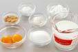 耐熱ボウルに卵黄とグラニュー糖を入れ、泡立て器で白っぽくふんわりなるまでよく混ぜ合わせる。