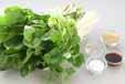 <ゴマダレ>に1、2、ミツバを加えて混ぜ合わせ、器に盛る。