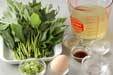 鍋にだし汁を入れ強火にかけ、煮立てば<調味料>を加える。再び煮立てば、モロヘイヤを加える。