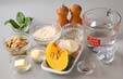 カボチャは種とワタを取り、皮を削ぎ落として1cm角に切る。