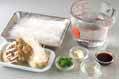 エノキは水洗いして根元を切り落とし、3等分の長さに切る。