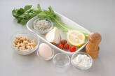 ボウルに玉ネギ、チリメンジャコ、水煮大豆を混ぜ合わせ、軽くもむように混ぜ、少ししんなりすれば卵を加え、ミツバを混ぜ合わあせる。