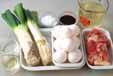 <合わせだし>を煮立て、鶏肉、下仁田ネギを加え、ネギがしんなり柔らかくなるまで中火で煮る。