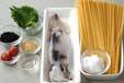 イカは足を引き抜き、目の下で切る。胴の内側をきれいに水洗いして軟骨を取り、1cmの輪切りにする。足は4cm位に切り、1本ずつに切る。
