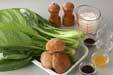 青菜は特に根元をきれいに洗い、たっぷりの熱湯でサッとゆで、すぐに水に取る。粗熱が取れれば、水気を絞って2~3cmの長さに切る。