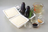 ナスはヘタを切り落として縦半分に切り、皮側に浅く斜めに切り込みを入れ、水に放ってアクを抜く。