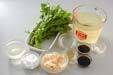 菊菜は水洗いして根元の固い部分を切り落とし、1cmの長さに切る。