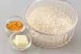 ターメリックを加えて炒めあわせ、炊飯器に入れる。