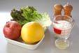 ボウルに<ドレッシング>を混ぜ合わせ、グレープフルーツ、よく水気を切ったリンゴを混ぜ合わせ、サニーレタスを敷いた器に盛る。