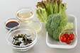 器にサニーレタスを敷き、海藻を盛り、ブロッコリー、プチトマトを添え、食べる直前にドレッシングをかける。