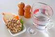 シメジは石づきを切り落とし、小房に分ける。長い物は半分に切る。