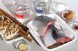 青魚の切り身は皮目に切り込みを入れる(今回はツバスを使用)。タップリの熱湯に青魚を1切れづつ入れて湯通しし、水に取ってヌメリをきれいに取り除く。