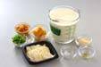 塩、なめたけ、刻み細ネギ以外の材料をミキサーに入れよく攪拌して、塩で味を調える。
