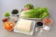 器に合わせ水菜を敷き、豆腐を盛り、白菜キムチをのせる。