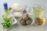 炊飯器に洗った米、<調味料>を入れ、普通に炊く水量線までだし汁を加える。里芋、チリメンジャコ、油揚げ、コンニャクを加えてスイッチを入れ、普通に炊く。