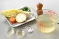 鍋に<スープ>の材料を入れ、強火にかける。煮立てば、刻んだキャベツ、玉ネギ、ニンジンを加え、柔らかくなるまで煮る。