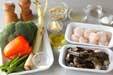 エビは殻と背ワタを取り除き、塩水で洗って水気を拭き取る。