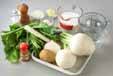 カブは皮をむき縦半分又は4つに切り、横に薄切りにする。