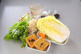 白菜がしんなりすれば水菜を加えてしんなりすれば火を止め、器に盛り合わせる。お好みで七味唐辛子を掛けていただく。