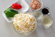 ピーマン、赤ピーマンは半分に切り、種とワタを取って細切りにする。
