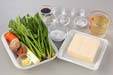 ほうれん草は特に根元をきれいに水洗いし、たっぷりの熱湯でサッとゆでて水に取る。粗熱が取れれば水気を絞り、根の固い部分を切り落として3cm幅に切る。