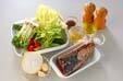 レタスはせん切りにして水に放ち、パリッとしたらザルに上げる。