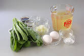 卵を加え、菜ばしで大きく円を描くように混ぜる。ふんわりと卵が浮かんでくれば、ほうれん草、刻み白ネギを加え、ひと混ぜして火を止める。