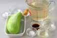 ウリは両端を切り落とし、皮をむいて縦半分に切り、スプーン等で中央の種とワタを取り、薄切りにする。