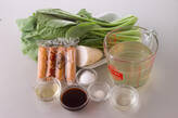 青菜は根元を少し切り落とし、根元を特にきれいに水洗いし、3cmの長さに切る。