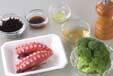 ブロッコリーは食べやすい小房に分けて、熱湯でサッとゆでて水に放ち、粗熱がとれればしっかり水気をきる。