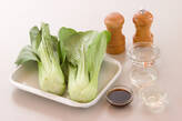 フライパンにサラダ油を強火で熱し、チンゲン菜を炒める。