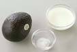 アボカドの果肉をスプーンで取り出し、つぶす。