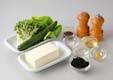 器にサラダ菜とワカメを敷き、豆腐を盛り付ける。キュウリ、貝われ菜を散らし、食べる直前に<ドレッシング>をかける。